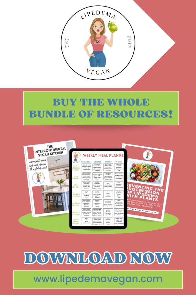 Why choose just one when you can have it all? 🌟 The LipedemaVegan Bundle includes all three resources—Preventing the Progression of Lipedema with a Healthy Vegan Diet, The Intercontinental Vegan Kitchen, and the Weekly Meal Planner—for the best value!